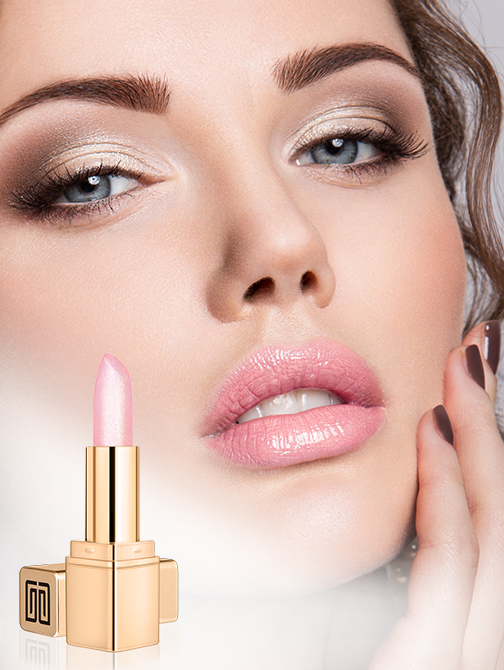 植物配方珠光唇膏,顏色是透明的,涂在嘴唇上,顏色會根據(jù)不同人的PH值改變,呈現(xiàn)亮亮的粉色效果。